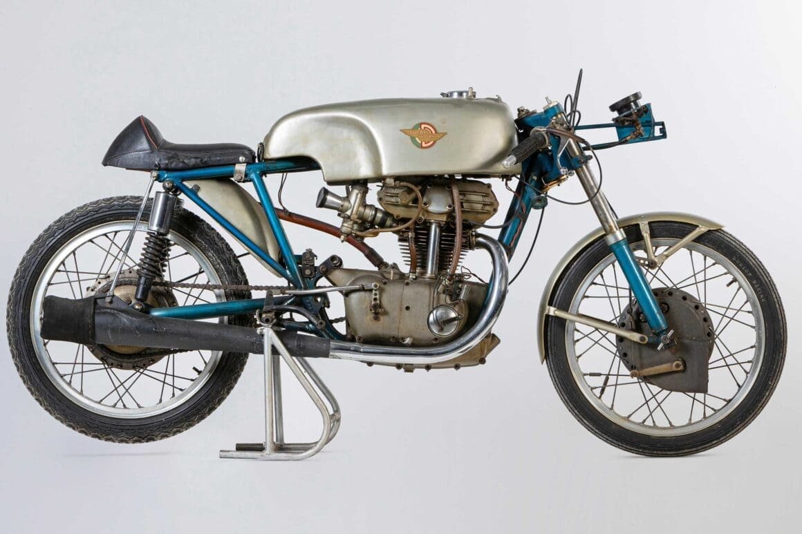 Wow! A 1960 Ducati 125cc raced by a young Mike Hailwood is coming for sale at Bonham’s Spring Stafford sale at the International Classic Motorcycle Show on 22 April 2023. The auctioneer’s estimate is £95,000 to £120,000.
