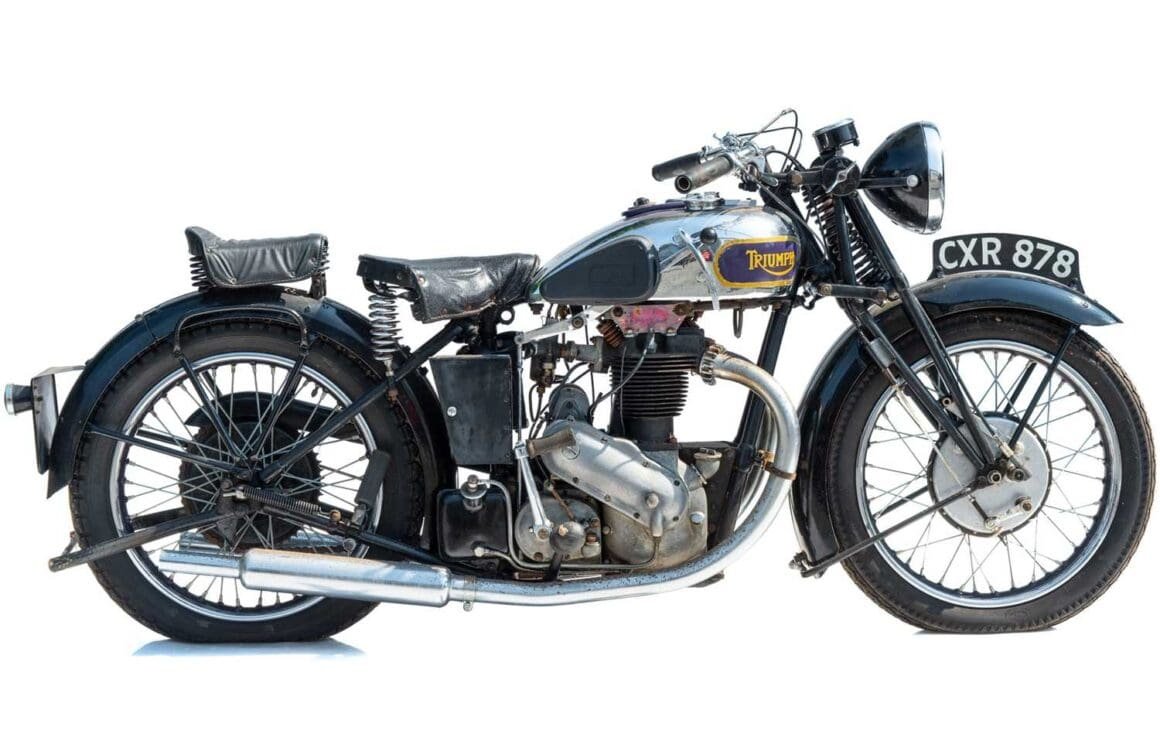 Lot 403 1936 Triumph 6/1 650cc twin-cylinder motorcycle. Sold for £9,000