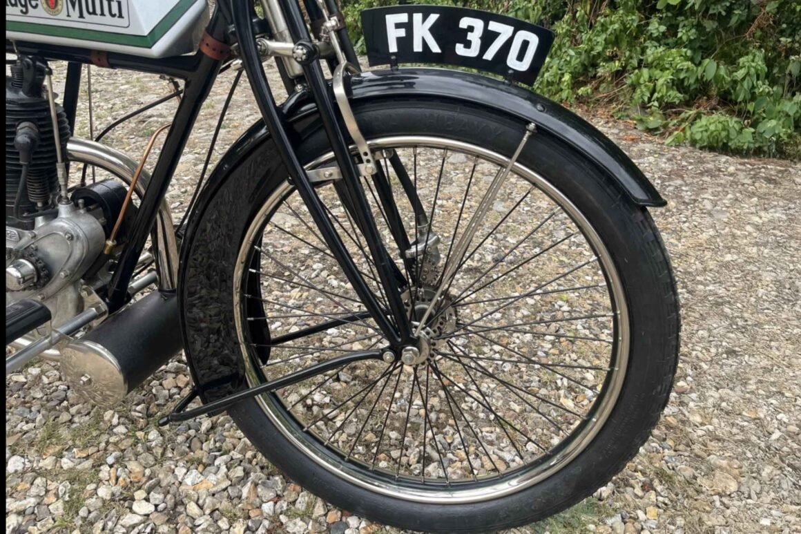 The 1912 Rudge Multi 500cc arrived at exactly the moment motorcycling needed a clever workaround. In an era when most machines still relied on single-speed belt drive (or a crude two-speed), Rudge-Whitworth’s answer was the “Multi” variable-ratio transmission: a belt-driven, expanding-and-contracting pulley system that effectively gave the rider a wide spread of ratios without a conventional gearbox.