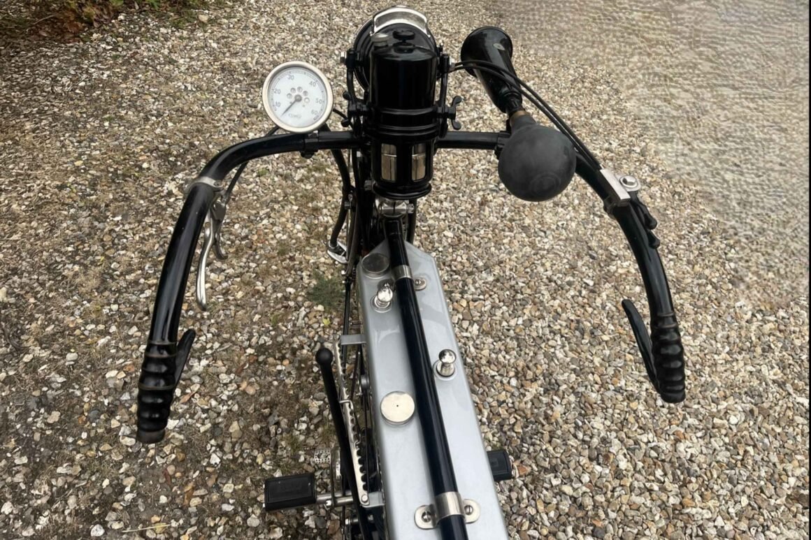Even lubrication reflects the transitional nature of 1912 engineering: an oil tank on the seat tube with a pump operated by the rider (often described as right-foot operated), reinforcing how “riding” could include actively managing the machine’s wellbeing.