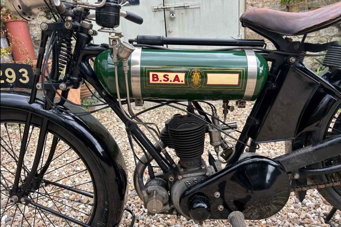 Also for sale with Charterhouse is this 1924 Birmingham Small Arms Company Model B 250 – better known as the “Round Tank”. The B 250 arrived in early 1924 as a deliberately budget-priced lightweight and quickly became one of the firm’s volume sellers of the decade.