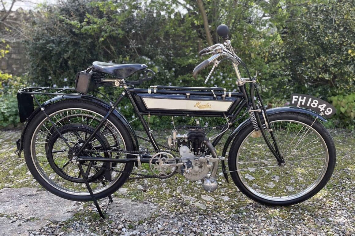 Old Boy 1912 Humber 2hp. Estimate £8000-£9000. Very rare original model fitted with the Armstrong 3-speed rear hub. Believed to be the only one in existence. Eligible for the Pioneer Run