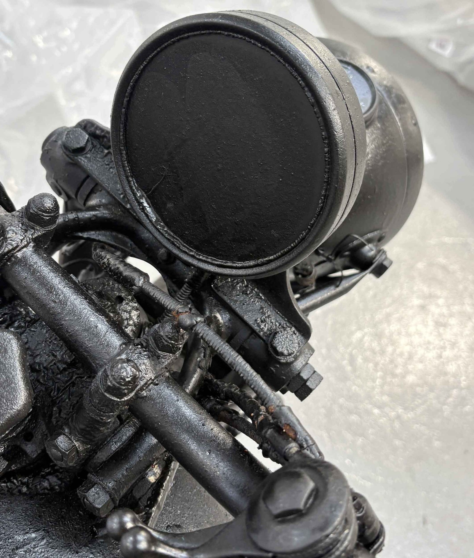 Bonhams make no promises about structure, metallurgy or internals. It turns, but what lurks inside a big Vincent v-twin that’s been roasted is anyone’s guess.